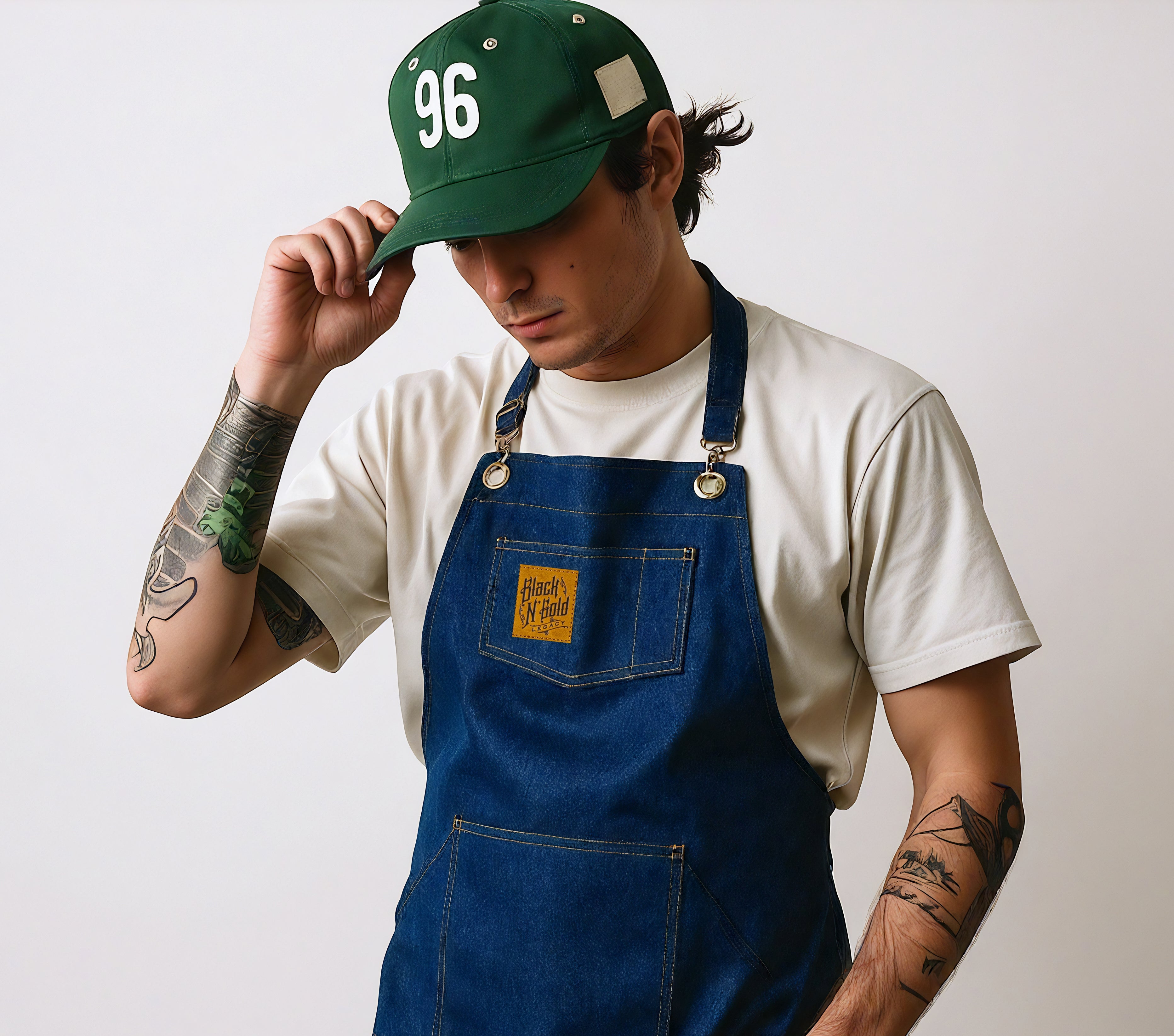 Our fashion aprons blend iconic style with practical elegance for the modern artist.
